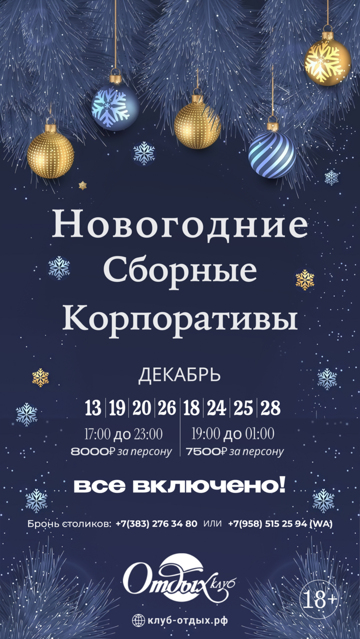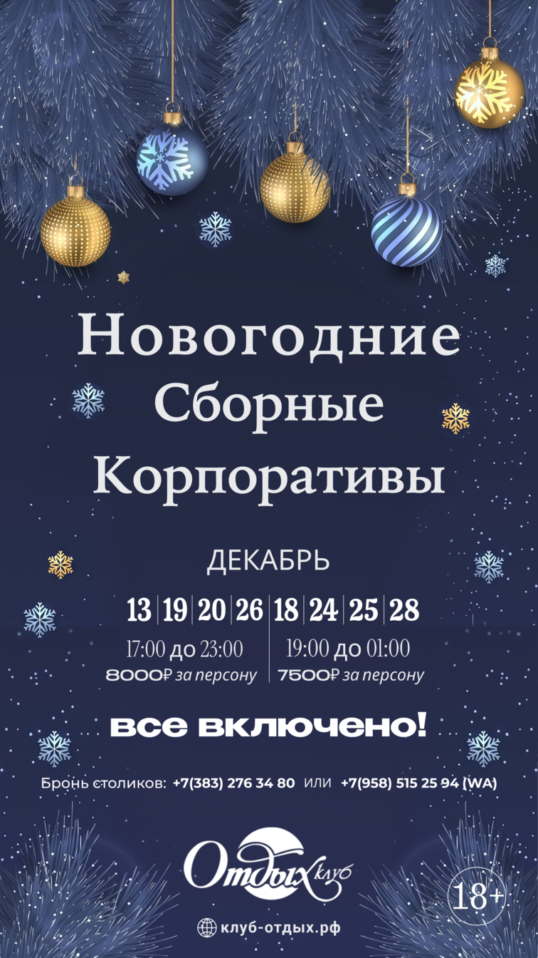 В программе — лучшее из новогодних традиций: яркое шоу с приглашёнными Дедом Морозом и Снегурочкой 🎅, весёлые хороводы вокруг ёлки 🎄 и мастерство артистов, которые не дадут заскучать 🌟. Танцы до утра под атмосферную музыку 🕺, душевные песни — в том числе от цыганской труппы с лучшими номерами, которые добавят страсти и экспрессии 🔥